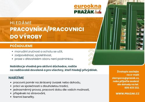 HLEDÁME PRACOVNÍKA/PRACOVNICI DO VÝROBY