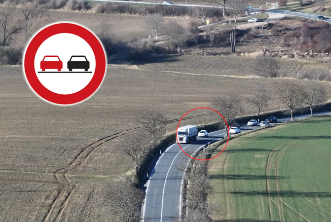 Řidiči u Kyjova porušili zákaz a nebezpečně předjížděli, usvědčil je dron